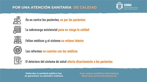 La Junta de Gobierno del Colegio de Médicos de Gipuzkoa (COMGI) quiere expresar su apoyo firme e incondicional a la huelga.