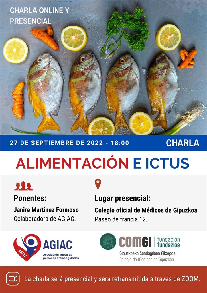 La Asociación Vasca de Personas Anticoaguladas (AGIAC), en colaboración con la Fundación del Colegio de médicos de Gipuzkoa, va a llevar a cabo la charla Alimentación e Ictus el próximo martes 27 de septiembre, a las 18:00h.