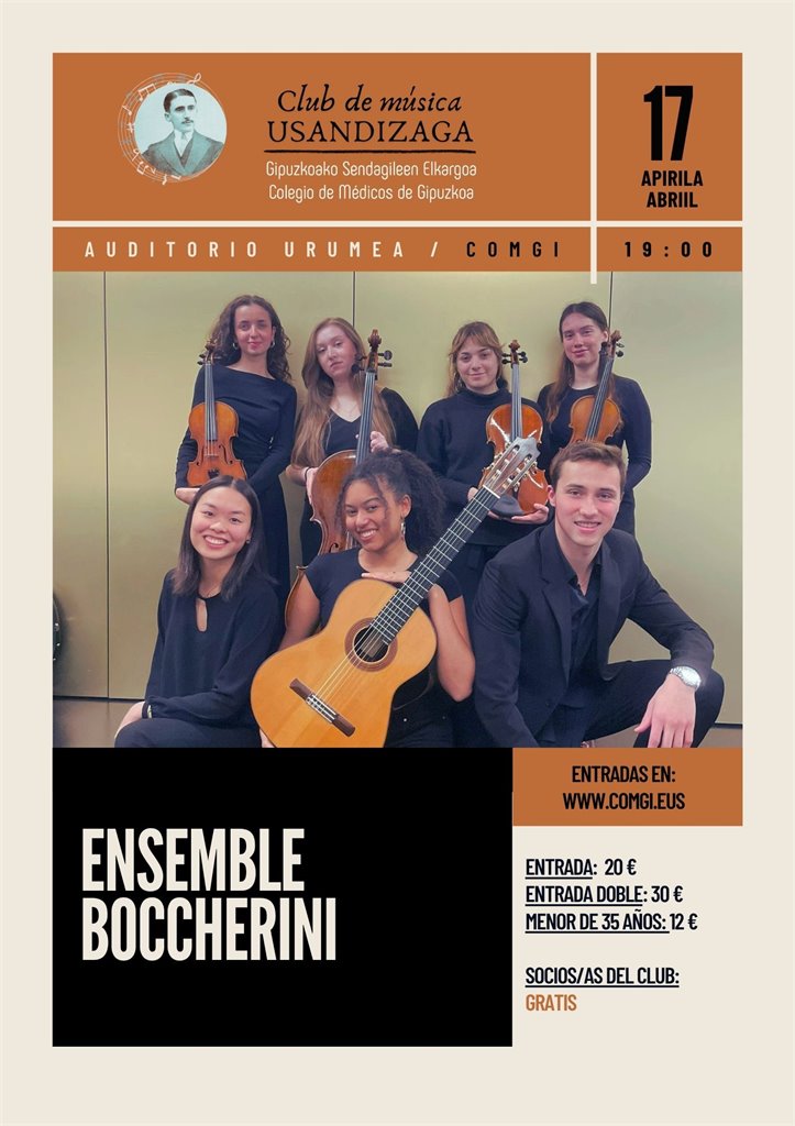 Este viernes se podrá disfrutar de un nuevo concierto del Club Usandizaga en nuestro auditorio URUMEA, de la mano de Ensemble BOCCHERINI.
