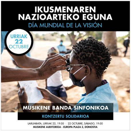 Con motivo del Día Mundial de la Visión, Munduko Begiak ha preparado una serie de actividades que tendrán su colofón el día 22 con un concierto solidario. El  tendrá lugar en el Auditorio de Musikene (Europa plaza 2, Donostia) a las 19:00h, y estará dirigido por Carlos Garcés y con Roi Guzmán como solista de trompa.