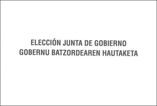 1. El elector introducirá la papeleta de la lista que decida votar en el primer sobre, el que indica: "Elección Junta de Gobierno", cerrándolo.