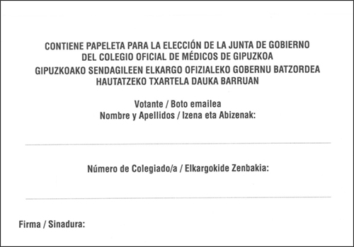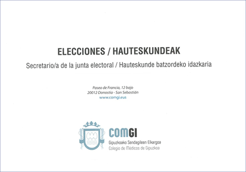 La solicitud se puede realizar por correo ordinario o correo electrónico a la dirección elecciones@comgi.eus o presencialmente en la sede del colegio. Importante: la dirección de correo electrónico desde la que se envíe debe coincidir con la que figura en los archivos del colegio.