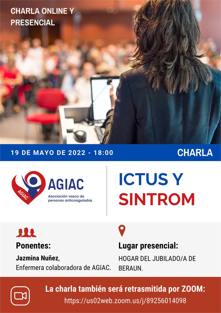 Desde AGIAC, Asociación Vasca de Personas Anticoaguladas, han preparado su próxima charla, "ICTUS Y SINTROM":