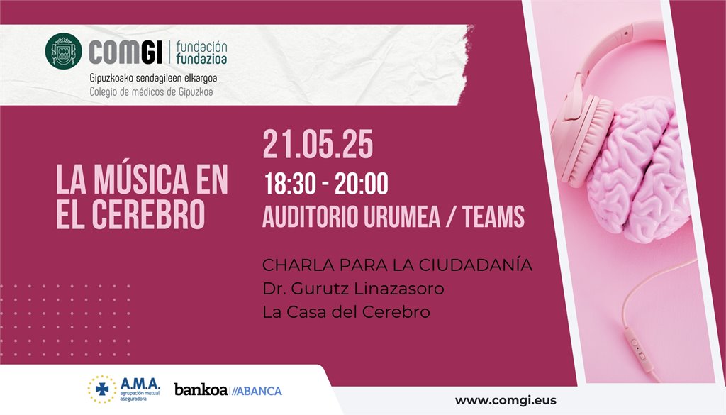 La Casa del Cerebro y la Fundación COMGI organizan para el 21 de mayo, a las 18:30 horas, la charla La música en el cerebro. Estas sesiones dirigidas a la sociedad se engloban dentro del Aula de Educación Sanitaria que organiza la Fundación COMGI en colaboración con diferentes asociaciones y tienen por objetivo promover la salud, pero también acercar la investigación y la innovación en salud a la ciudadanía.