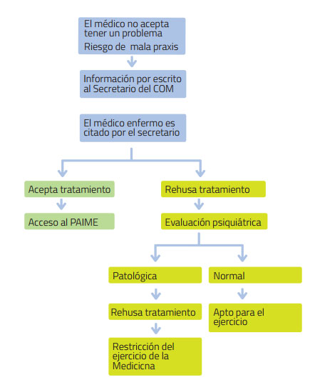 La secuencia de pasos a seguir ante un ME posible de tratamiento PAIME que No acepta tener un problema, podría quedar resumida de una forma gráfica en el siguiente cuadro: