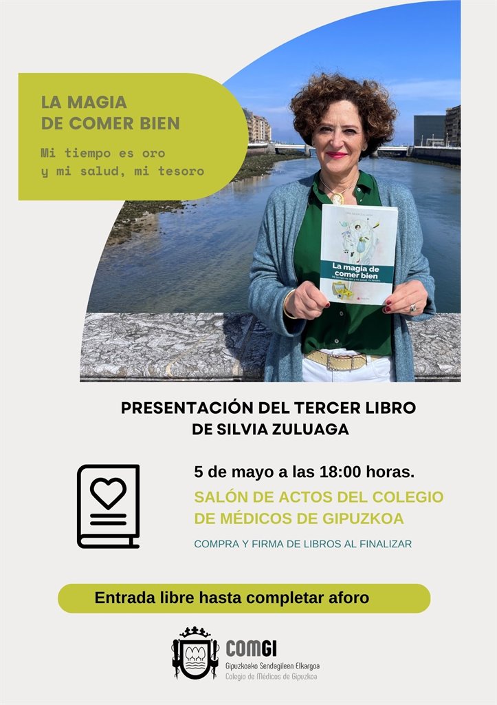 El próximo 5 de mayo, viernes, a las 18:00 horas, se presentará en el Colegio el tercer libro de nuestra compañera Silvia Zuluaga: La magia de comer bien: Mi tiempo es oro y mi salud, mi tesoro.