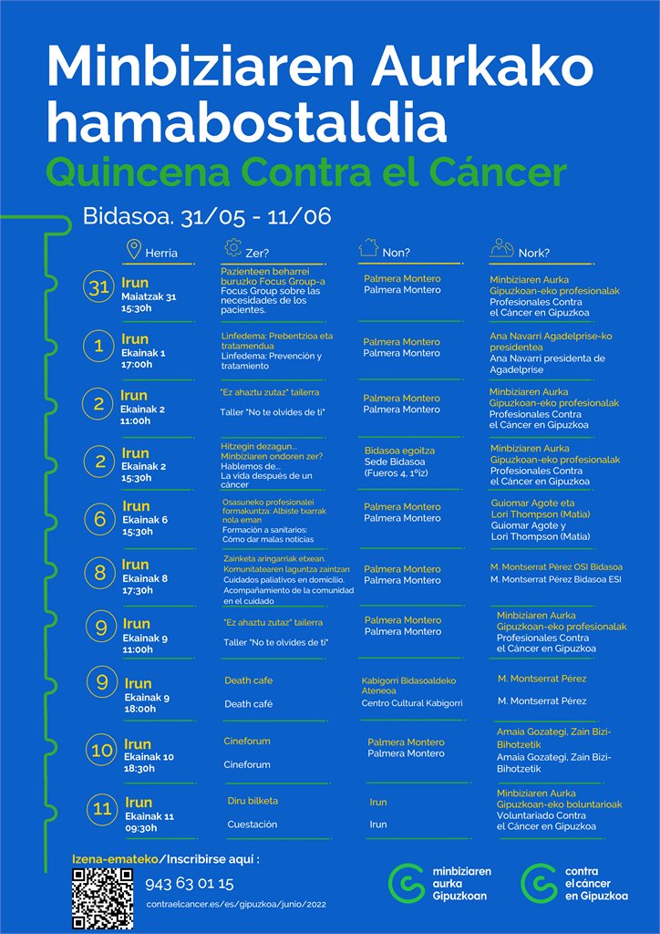 La asociación Contra el Cáncer, en colaboración con la fundación Matía, y dentro de la Quincena Bidasoa contra el Cáncer, organiza el Taller de Cómo dar malas noticias.