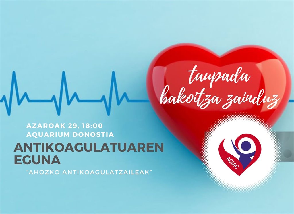 Antikoagulatuaren Nazioarteko Eguna dela eta, Euskadiko Antikoagulatu Pertsonen Elkarteak “Bihotz taupadak zainduz” ekitaldia antulatu du azaroaren 29an, ostirala, 18:00etan, Donostiako Aquariumean.