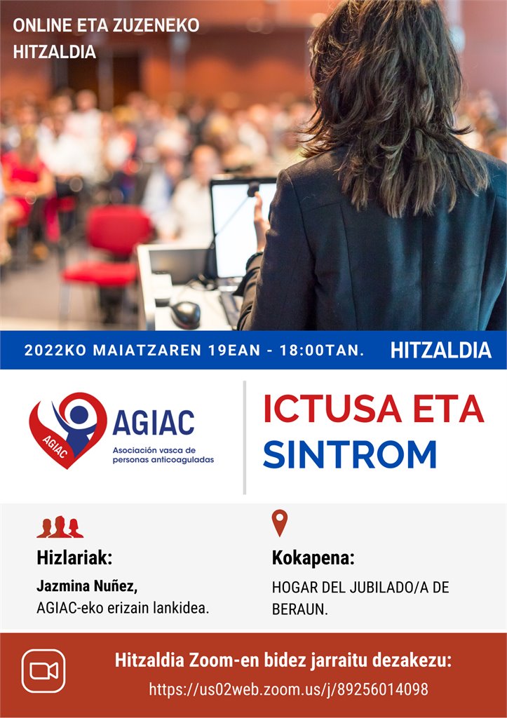 AGIACek, Pertsona Antikoagulatuen Euskal Elkarteak, "Iktusa eta Sintroma" hitzaldia prestatu du: