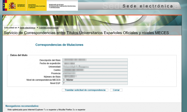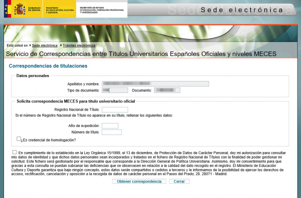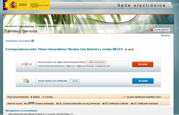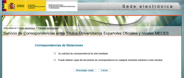- Joan zaitez orduan esteka honetara: Trámites y Servicios del Ministerio de Educación, Cultura y Deporte para la Correspondencia entre títulos oficiales “pre-Bolonia” y niveles MECES.