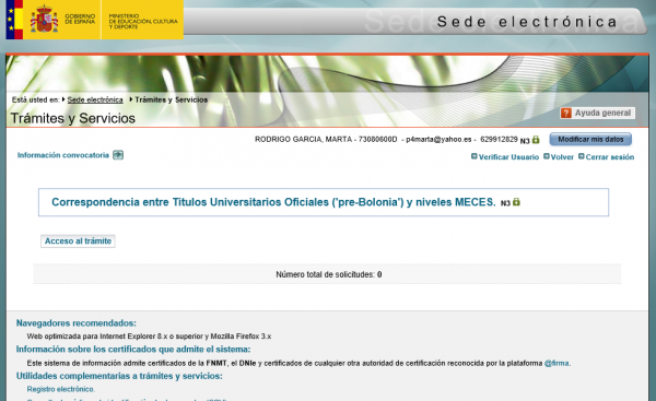 - Ondorengo webgunera jo: Trámites y Servicios del Ministerio de Educación, Cultura y Deporte.